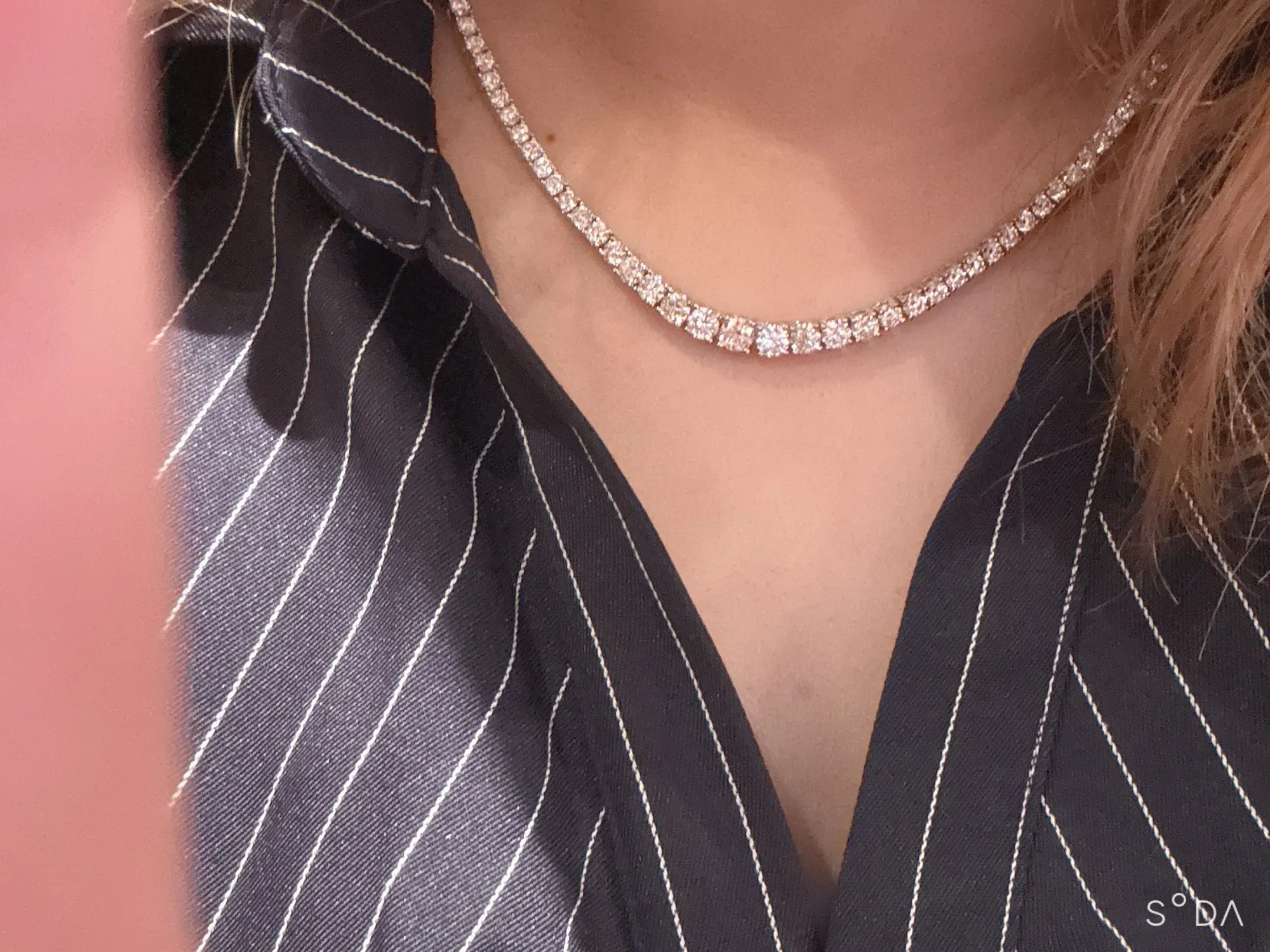 It’s really shiny, and i love how balanced it looks with the different size stones since i didn’t like normal tennis necklaces, worth it!